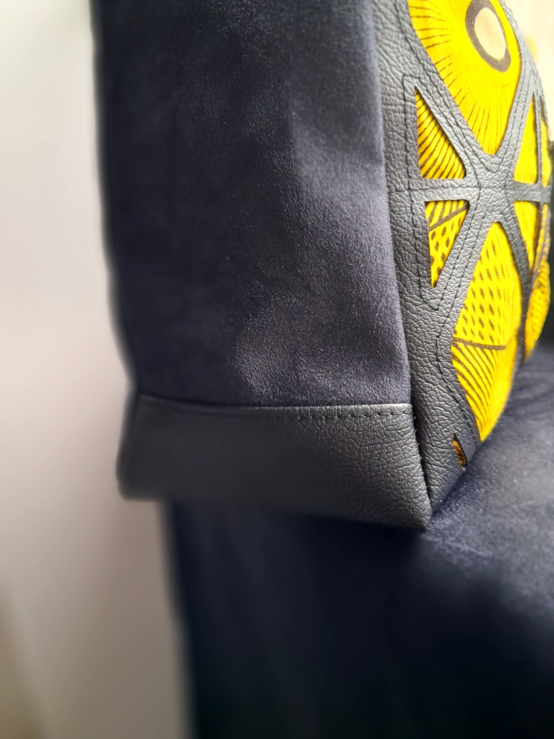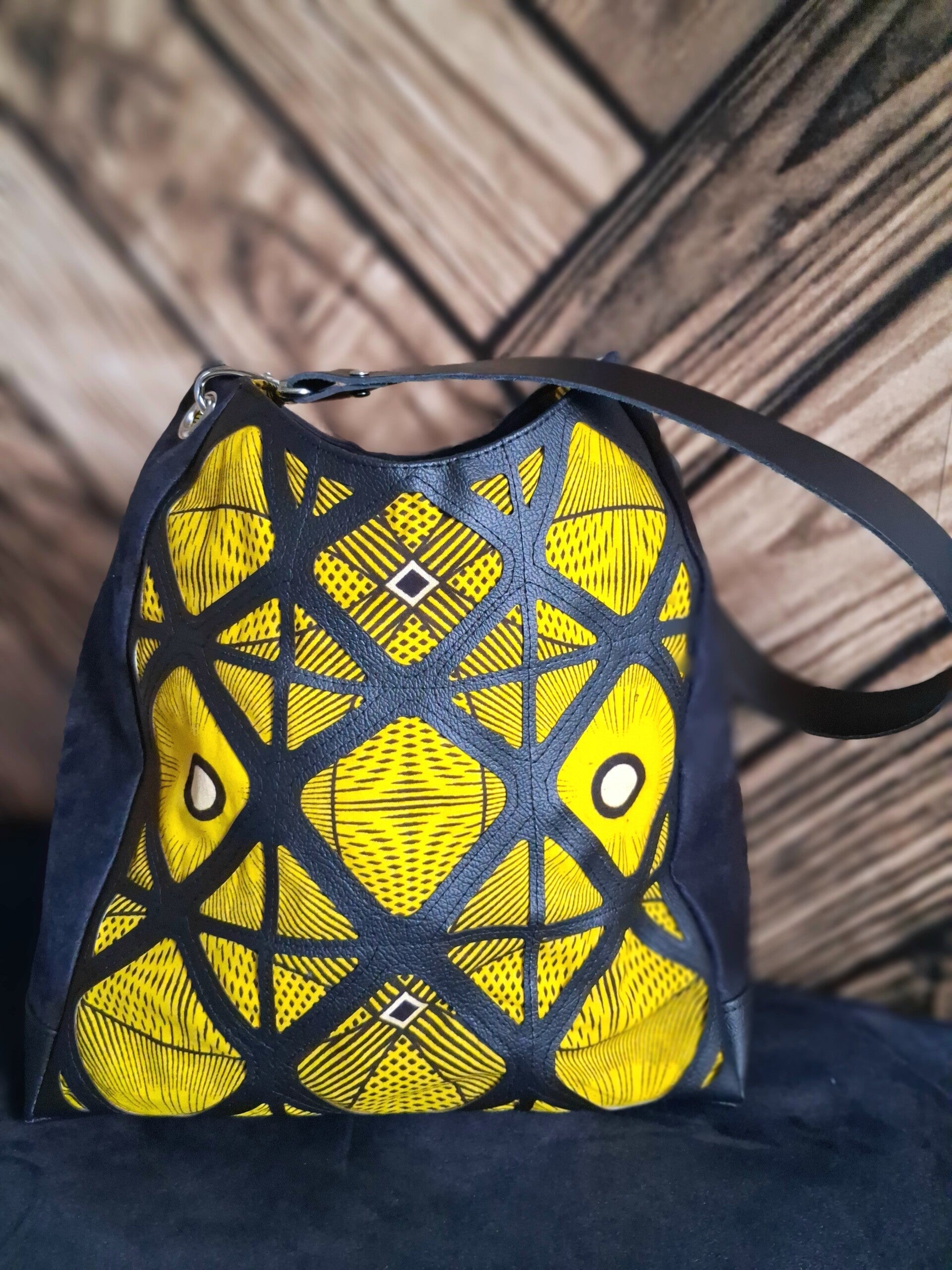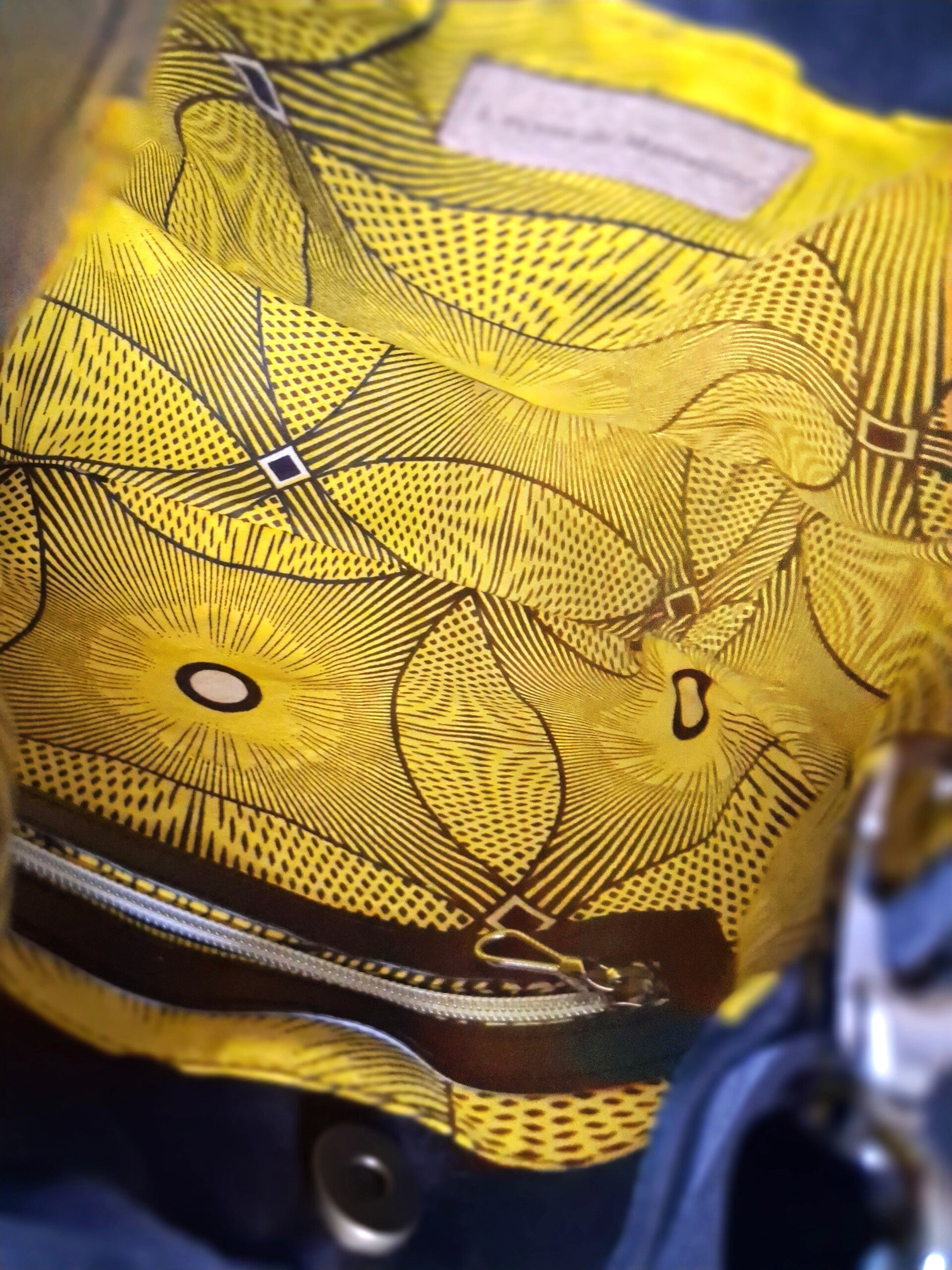 Le sac Oeil d’Or est une pièce maîtresse de notre collection, conçue pour celles qui ne veulent pas choisir entre l'art et la fonctionnalité. Son motif géométrique hypnotique, inspiré des textiles traditionnels revisités, mêle un jaune safran vibrant à un noir profond pour un contraste saisissant.